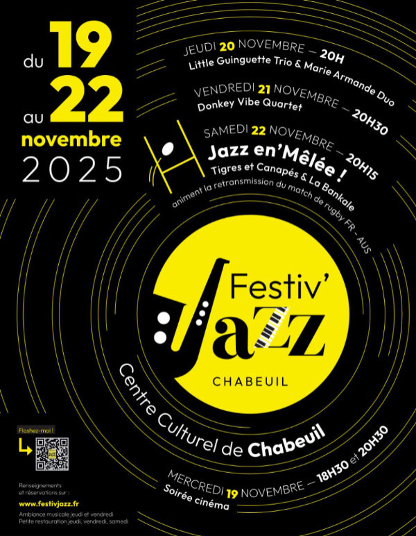 Le Festiv’Jazz de Chabeuil se déroulera du 19 au 22 novembre (voir ici)
